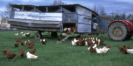 Salatin, a gregarious and passionate man, greets his hens as “ladies” and has the chickens roam free (actual free-range chickens as opposed to the myth perpetuated by the industrialized dairy industry). He considers them “workers” and “part of the team.” Each day, he moves his cows from paddock to paddock, imitating their natural herding behavior. Salatin clearly respects the animals and the land. He says, “As stewards of the earth, we have to respect the design of nature.” This mantra becomes evident when he discusses all of the diseases out there, such as avian flu, E. coli, mad cow, as he says, “Nature is speaking to us saying enough is enough.”
