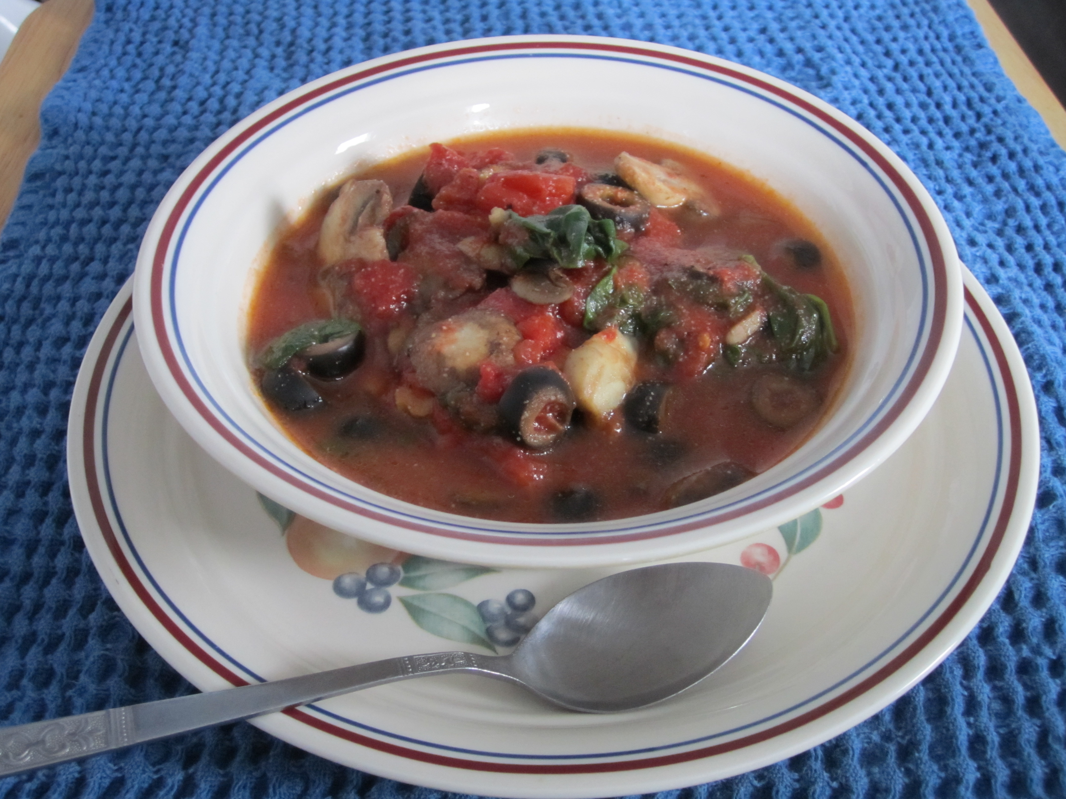 After a few minutes, add olives and spinach. Continue sauteing until mushrooms start to soften and turn golden brown. Add salt and pepper to taste.