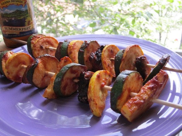 With this easy sauce, you’ll wonder why you ever bought prepared BBQ sauce. Starting with a rich tomato base, maple syrup adds a sweet, smoky undercurrent while apple cider vinegar imparts a sweet, tart tang. Salty soy sauce balances the sweetness. Cumin, chili powder and Tabasco sauce provide depth of flavor with heat and spice. With tender veggies and a tangy BBQ marinade, you’ll taste summer in every bite.