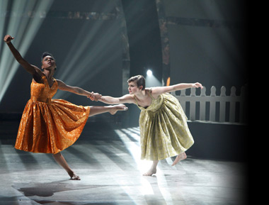 1. Sasha and Melanie dance Stacey Tookey’s Mad Men-esque routine “Heart Asks Pleasure First” about “two suppressed housewives in the 1950s.” Isolated by sexist expectations of domesticity and perfectionism, they yearn to break the shackles of their white picket prison and explore the world. In the media, we often see women catty and backbiting, competing for men’s attention and praise. In this dance, the two women cooperatively unite to find the courage “to be free.”