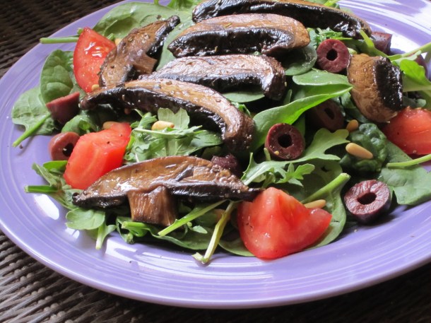 8. Divide salad on 4 plates. Place grilled mushrooms on each bed of salad.